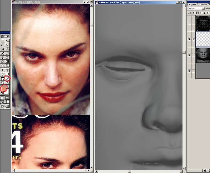 skin tone from her face and filled the layer with