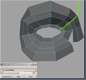I've selected the edges shown here for the next extrude.