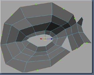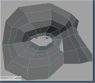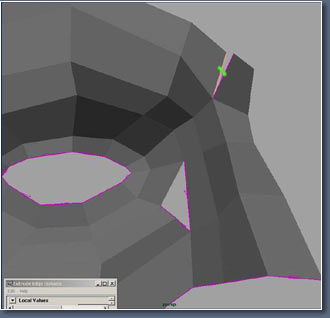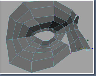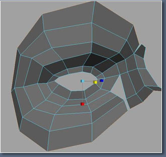 Now look at the edges I've highlighted here, I want them to follow up the fore head, this edge is important because were use it for making wrinkles on the forehead. look at the picture of the man at the top of the page again and you should see the line.