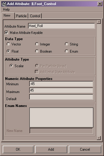 attribute, Heel_Pivot with a Minimum of -30, and a maximum of