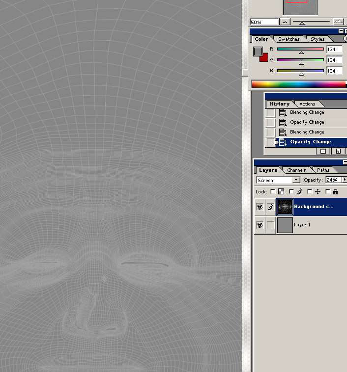 the uv map over the gray layer and turned down the opacity. |
