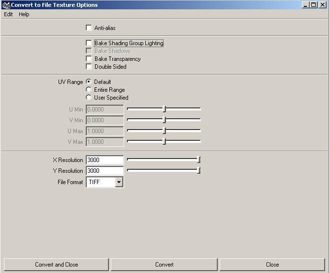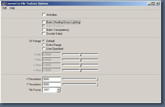 options i've selected texture size 3000 by 3000 because
