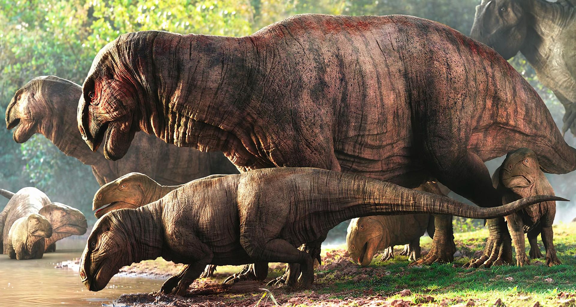 Animation short following the adventures of a small family of Carnotaurus