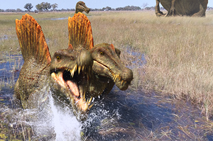 Utahraptor (meaning "Utah's predator") is a genus of large dromaeosaurid dinosaur that lived in North America during the Early Cretaceous period. It was a heavy-built, ground-dwelling, bipedal carnivore. It contains a single species, Utahraptor ostrommaysi, which is one of the largest-known members of the family Dromaeosauridae, measuring 4.9–5.5 m (16–18 ft) long and weighing 280–300 kg (620–660 lb).