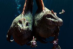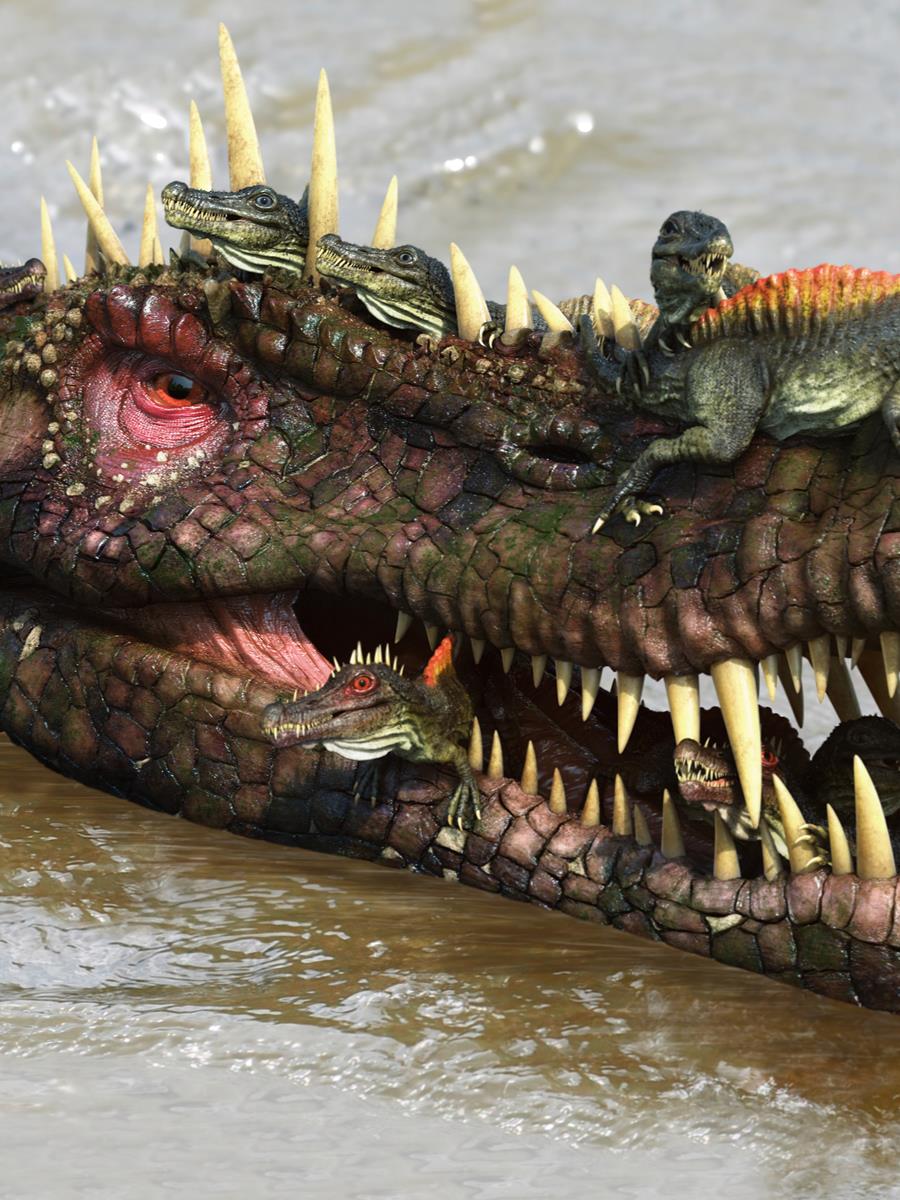Creatures featured in project onchopristis,Spinosaurus,Mawsonia